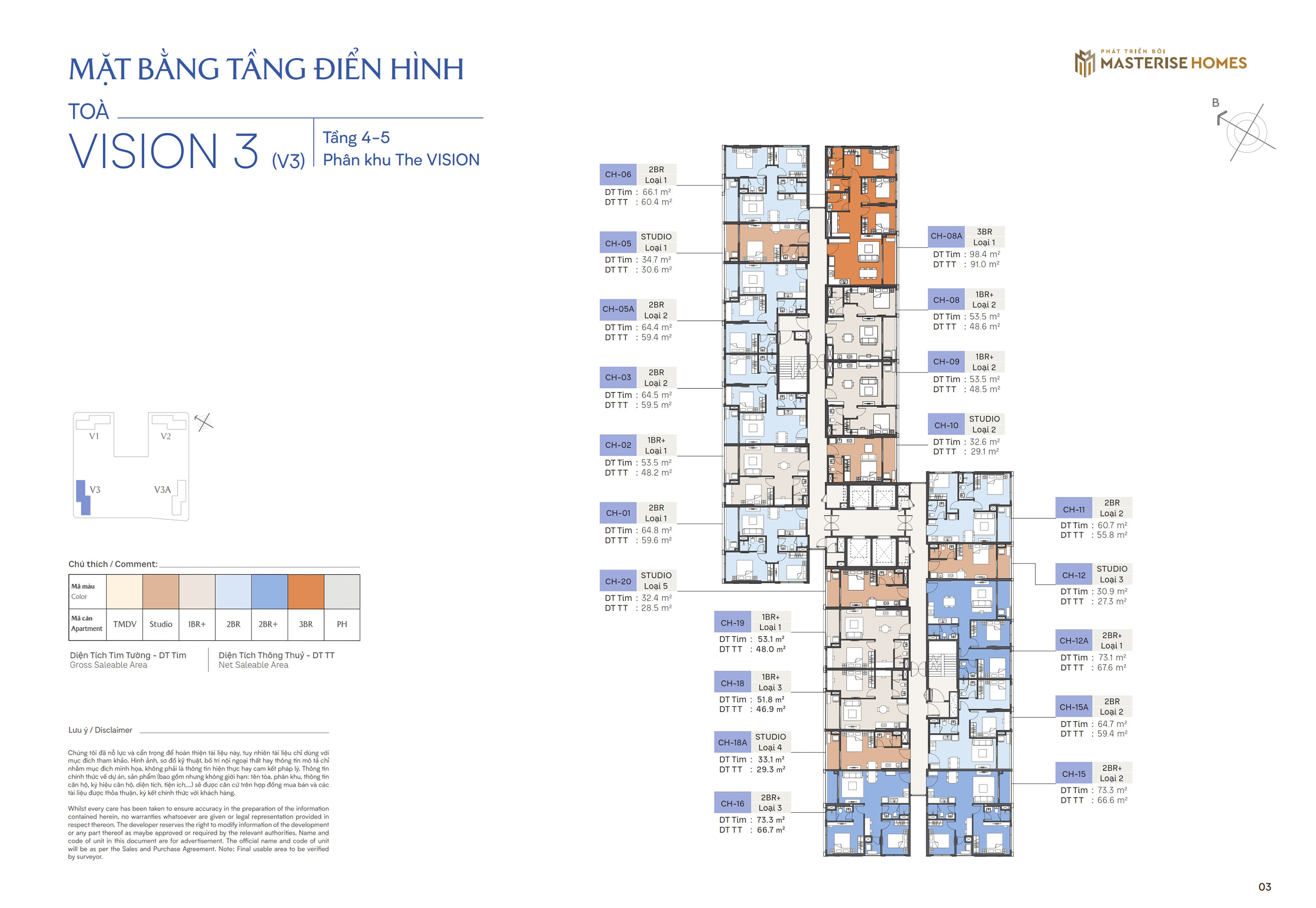 Diện tích: 29,4 – 93,3m2 (Studio – 3PN).